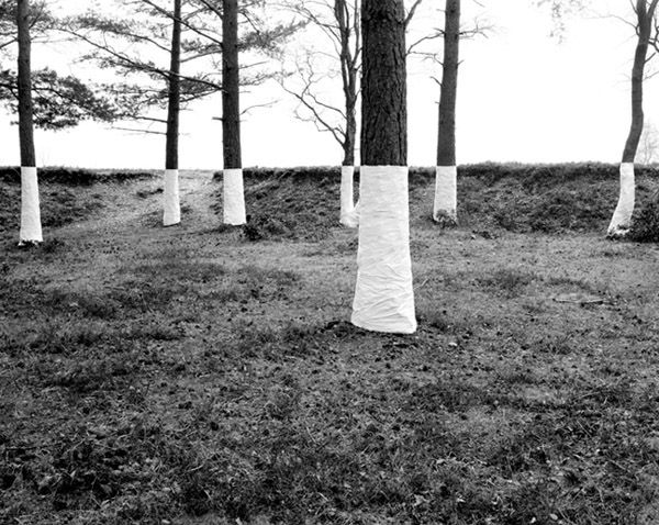 Perfect red line in a Hungarian forest marking the high point of a toxic aluminum sludge spill