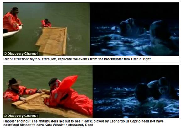 このシーン、観客の中には感涙にむせびつつも「あの木材、ひょっとして二人乗れたんじゃ?」とチラリと考えた人も少なくないようだ。その疑問を解決すべく、今回検証を行ったのが米国のTV番組『ディスカバリー・チャンネル』だ。