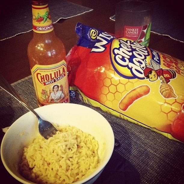 辛味ソースとラーメン、あとチーズカール