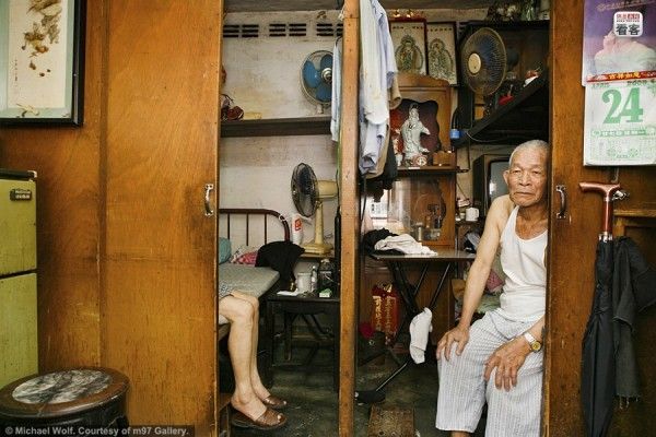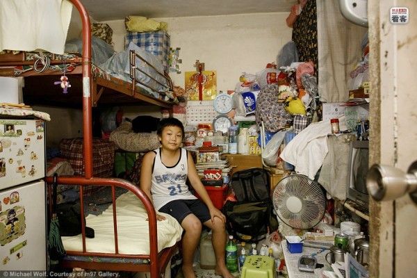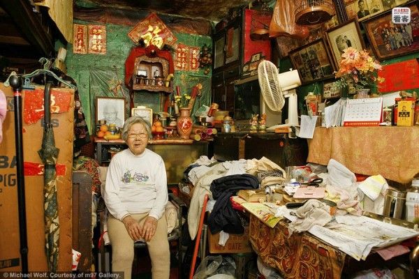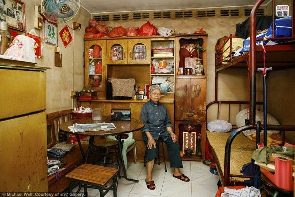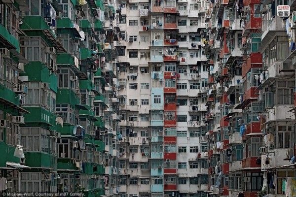 そこで建設されたのが、海外サイト『chinasmack.com』に掲載されていた超高層&超密集型マンション。しかも極狭!写真はドイツのカメラマン、マイケル・ウォルフ氏の作品『Architecture of Density』より抜粋したもの。ウォルフ氏は、このような香港独特の建築を数多くフィルムにおさめていることで知られる方です。しかしこの写真、見ているだけで目がチカチカしてきます。なんかもう、マンションじゃなくて、こういう模様みたいです。目をチカチカさせる原因は、ずらりと並ぶ数え切れないほどの窓。香港が誇る100万ドルの夜景に一役買っているのは、どうやらこれだったみたい。規則的に並んだ窓を見ていると、あまり生活感が感じられませんよね。でもね、蓋を開けてみると、そこには雑多でごちゃごちゃとした暮らしのニオイと、驚くほど狭~い居住空間が展開されていたのです!お部屋を覗いてみると、失礼ながら「えっ ここ人が住めるんだ…..」と愕然。