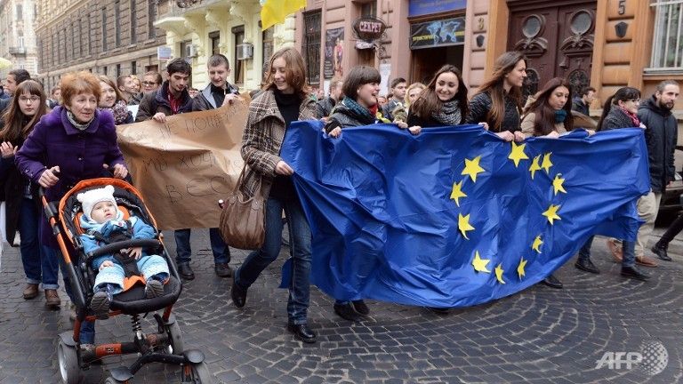 ウクライナEU加盟見送り抗議