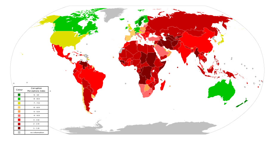 トランスペアレンシー・インターナショナル(TI)が、1995年以来毎年公開しているもので、公務員と政治家がどの程度腐敗していると認識されるか、その度合を国際比較し、国別にランキングしたものである。 2009年の調査では、180カ国を対象とし、10の機関が調査した13種類のアンケート調査の報告書を統計処理して作成されている。指数は、最も清潔な状態を意味する10から、最も腐敗していることを示す0までの範囲で採点されており、7割の国が5未満で、開発途上国では9割以上の国が5未満となっている。