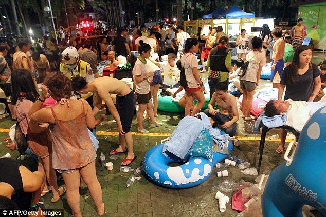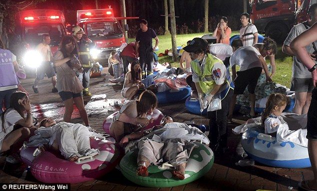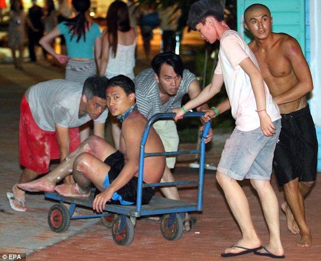 台湾・新北市のテーマパーク「八仙海岸八仙水上楽園」で27日夜発生した爆発で、イベント来場者らが火の玉にのみ込まれた後の現場の惨状が、目撃者らの発言で明らかになった。爆発発生当時の動画には、来場者らに吹き付けられた粉が突然引火し、会場が炎に包まれる様子が生々しく捉えられている。来場者が水着など薄着だったことから大勢の人々が重度のやけどを負い、惨事を免れた人々によって搬送された。軽傷を負った男子学生は現場が「地獄」だったと述べ、「あたりは血だらけで、痛みを和らげようとする人達が飛び込んだプールも血に染まっていた」と記者団に語った。男子学生と一緒にいた女性も、動揺を隠せない様子で「皮膚がはがれた人々を大勢見た」と話した。ある父親はイベントに参加した娘が重度の「3度」のやけどを負い、集中治療室で手当てを受けていることを明らかにして泣き崩れた。父親は途方に暮れながら「娘が参加していたのは音楽コンサートだった。そんな場所でどうして爆発が起こるのか」と涙声で語り、身体の80%余りの皮膚がやけどで損傷したと述べた。父親はまた、当局からの連絡が何もなく、支援の申し入れもないと厳しく非難した。当局が28日発表したところによると、負傷者は500人を上回っており、このうち約200人は重傷。保健当局は、負傷者の具体的な年齢はまだ不明であるものの、ほぼ全員が「20代以下」との見解を示した。