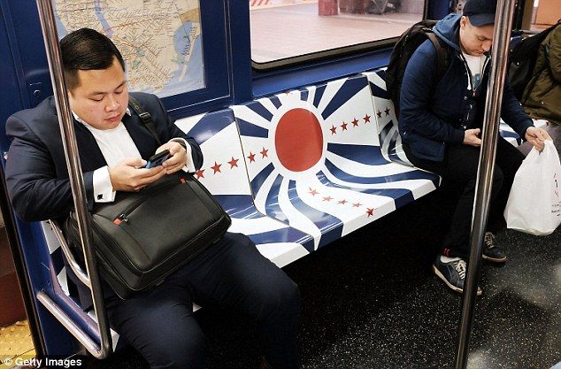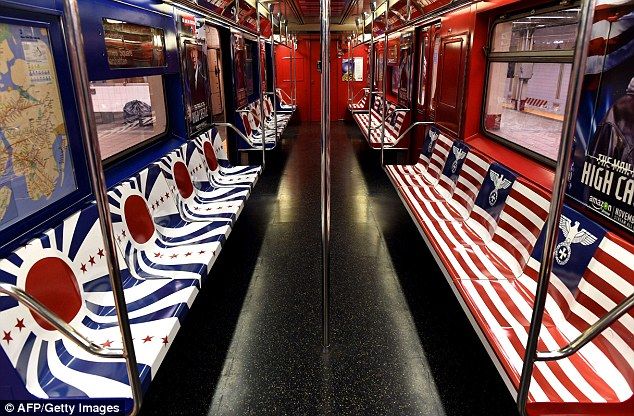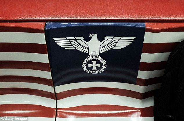 >>「座席は星条旗とナチスのシンボルがデザインされた広告で覆われている」