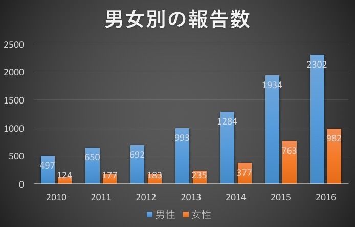 ここ6年に限ると、女性の増加が約8倍と顕著だ。