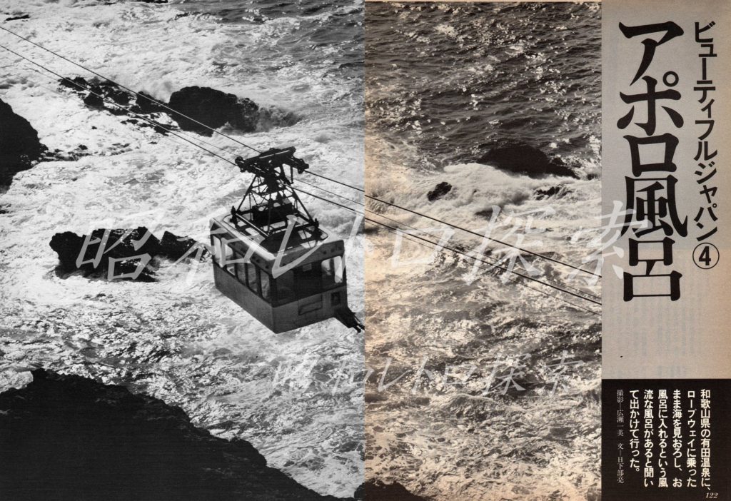 【和歌山県】有田観光ホテルにあった「宇宙アポロ風呂」ってなんだ?有田市宮崎町にある「有田観光ホテル」に、お風呂が備わったロープウェイがあったそうです。その名も「宇宙アポロ風呂」!! 温泉につかって空中をゆれながら大海原を見おろすという、聞いただけで面白そうな温泉です。最大の売りは、ロープウェイの中に浴槽があり、空中に浮かびながら温泉に入れるというお風呂。お湯は天然温泉だそうで、浴槽は10個ほどついており、男女は入れ替え制で利用されていたようです。詳細↓